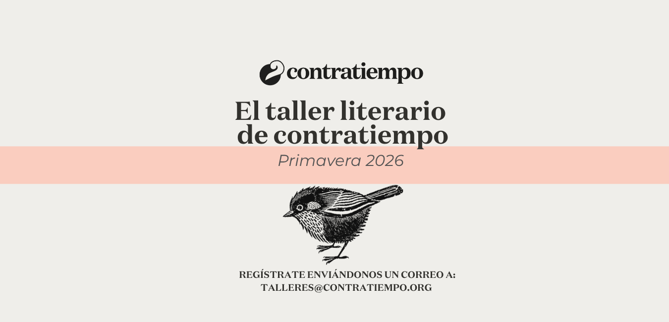 Contratiempo te invita a su ciclo de talleres de Primavera 2026. Revisa información completa aquí: ⬇️ “LUGAR DE ENUNCIACION”Con el poeta y editor: Miguel Marzana En este taller de poesía y creación literaria revisaremos algunas ideas a manera de herramienta crítica para encontrar, reforzar o abandonar el o los sitios del que pueda provenir nuestro […]